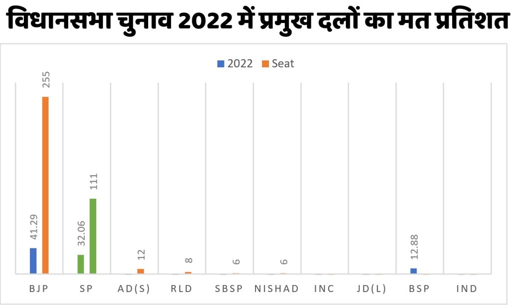 यूपी विधानसभा चुनाव 2022 दलवार मत प्रतिशत